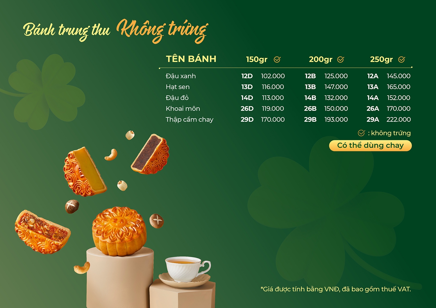 Chúng tôi xin gửi đến quý khách bảng giá bánh trung thu Givral 2025 chính thức từ hãng. Các set bánh năm nay vẫn giữ phong cách sang trọng, tinh tế với nhiều lựa chọn: bánh có trứng, không trứng, bánh chay… phù hợp làm quà biếu doanh nghiệp, đối tác và người thân trong mùa Trung Thu. Quý khách vui lòng tham khảo bảng giá chi tiết bên dưới để lựa chọn sản phẩm phù hợp và đặt hàng sớm với mức chiết khấu ưu đãi.